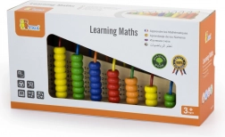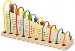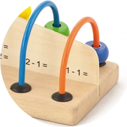 Deze compacte houten telhulp geeft kinderen plezier in het ontdekken van cijfers en eenvoudige rekenbewerkingen. Op het houten bord staan sommen, en het kind koppelt het juiste aantal kralen aan de metalen bogen. Dankzij het intuïtieve principe leren kinderen vanzelf cijfers herkennen, tellen en het verband tussen som en uitkomst begrijpen.