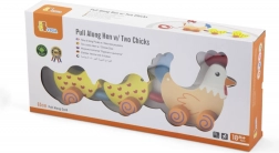 Dit houten trekspeelgoed verbindt een kip en twee kuikentjes met een rood koord. Tussen de kuikentjes zitten kleurrijke kralen die bij beweging zowel het zicht als het gehoor van het kind prikkelen. Tijdens het trekken wiebelt het hele vrolijke “gezinnetje” schattig mee en motiveert kinderen om te lopen.