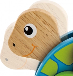 Deze kleurrijke houten trekschildpad is ontworpen om kinderen te motiveren tot lopen, de bewegingencoördinatie te ondersteunen en zowel de fijne als grove motoriek op een natuurlijke manier te ontwikkelen. De robuuste houten constructie en prettig afgeronde randen zorgen voor veilig spel, terwijl de opvallende kleuren en speelse vormgeving het visuele waarnemen stimuleren.