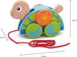 Vrolijke kleuren, de vriendelijke uitstraling van de schildpad en het moeiteloos trekken over de vloer maken van elke wandeling een speels avontuur.