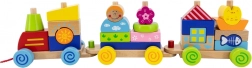Dit kwalitatieve houten trekspeelgoed-treintje met drie wagonnetjes biedt talloze mogelijkheden om kleurrijke vormen te stapelen en te herschikken. Kinderen oefenen hand-oogcoördinatie, leren kleuren en vormen herkennen en genieten ondertussen van het trekken van het treintje door het huis.