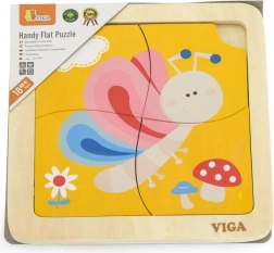 Eerste puzzel voor de allerkleinsten: de houten puzzel met vlindermotief van VIGA heeft 4 grote stukjes die gemakkelijk vast te pakken zijn en in een houten frame met voorbeeld worden gelegd. Ondersteunt fijne motoriek, oog-handcoördinatie en logisch denken, ideaal vanaf 18 maanden.