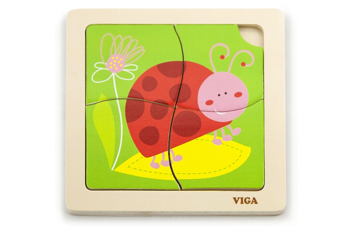 Deze eenvoudige houten puzzel met een lieveheersbeestje is een geweldige eerste puzzel voor jonge kinderen. Dankzij de stevige, gladde stukjes liggen ze goed in de hand en zijn ze gemakkelijk in het frame te plaatsen. Het motief in levendige kleuren moedigt aan tot spelen en bevordert de concentratie.