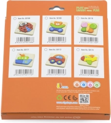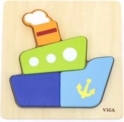 De houten mini-puzzel van Viga is de ideale eerste puzzel voor peuters en kleuters. Vier kleurrijke stukjes passen precies in de gefreesde vorm van de ondergrond en vormen na het leggen een vrolijke afbeelding van een schip. Eenvoudige vormen en heldere kleuren motiveren kinderen om steeds opnieuw te puzzelen en stimuleren hun natuurlijke nieuwsgierigheid.