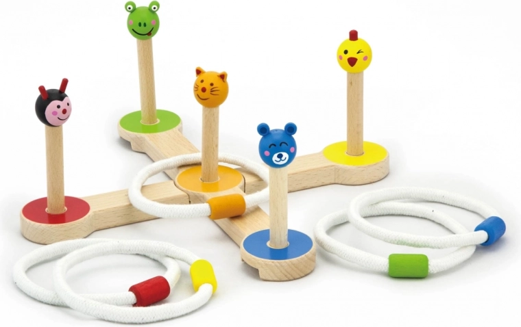 VIGA houten spel ringen gooien is een leuk en actief spel voor familie en vrienden, dat de hand-oogcoördinatie en vaardigheden van uw kinderen bevordert dankzij gekleurde figuren en eenvoudige regels.