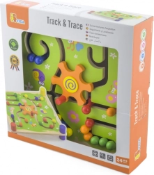 Het spel Trop en Volg is ontworpen om fijne motoriek en hand-oogcoördinatie te ontwikkelen. Kinderen worden aangemoedigd om pinnen op de juiste posities op het bord te plaatsen, volgens de zes bijgevoegde patroonkaartjes.