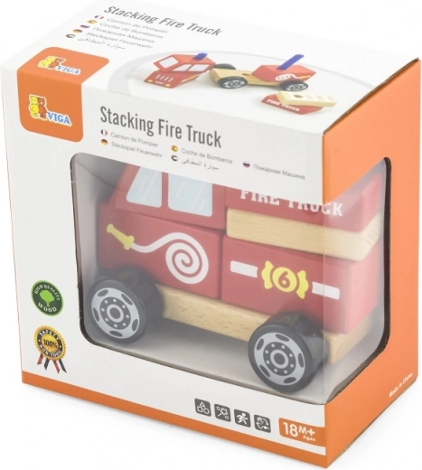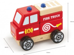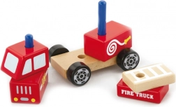 Stapeltjeer de afzonderlijke houten onderdelen op het chassis en maak je eigen brandweerauto. Kinderen trainen stap voor stap hun geduld en coördinatie.