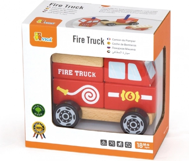 De houten bouwpuzzel brandweerauto van VIGA is het ideale speelgoed voor kleine hulpverleners. De gladde houten delen liggen prettig in de hand, zijn veilig te monteren en vormen na het in elkaar zetten een stevige auto die meteen “naar de brand” kan rijden.