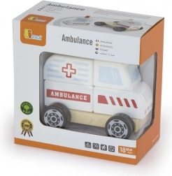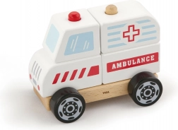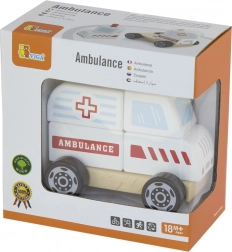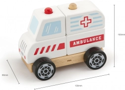 Deze houten ambulance combineert een bouwpuzzel met een rijdend autootje. Kinderen kunnen de losse onderdelen tot een ambulance stapelen en daarna rijden dankzij de soepel rollende wielen. Robuust hout, hoogwaardige verven en afgeronde randen zorgen voor veilig spelen en een lange levensduur.