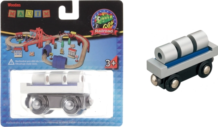 Maxim Wagon met spoelen, ongeveer 9 cm groot. Leeftijd 3+