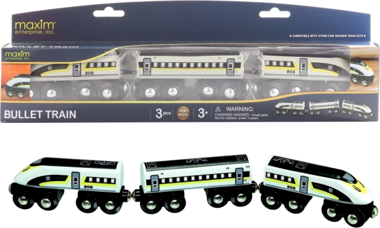Een snelle en leuke houten treinstel geïnspireerd op de legendarische Shinkansen. Biedt een krachtige “motor” voor vlotte ritten, stabiliteit op de rails en comfortabele bediening met locomotieven aan beide uiteinden, zodat omkeren niet nodig is. Compatibel met de meeste houten treinbanen op de markt. Leeftijd 3+.