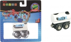 Vul de wagon met melk en rijd naar de zuivelfabriek, waar de lekkerste yoghurt wordt gemaakt. Dankzij de compatibiliteit met gangbare houten rails integreert hij eenvoudig in je bestaande opstelling en brengt hij kinderen nieuwe speelmogelijkheden.