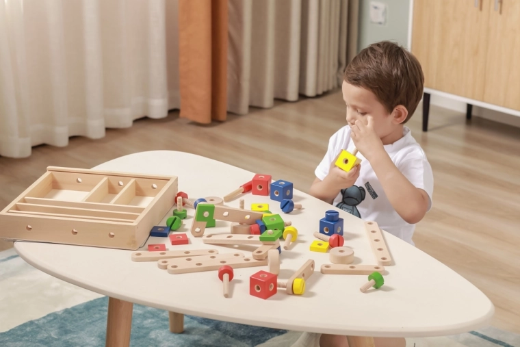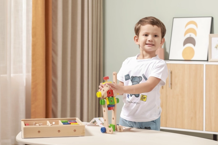 Ontdek de leuke en leerzame houten bouwset constructeur met 53 onderdelen en een illustratieve brochure voor eenvoudig bouwen. Stimuleert fijne motoriek, creativiteit en ruimtelijk inzicht. Ideaal voor kinderen vanaf 3 jaar, opgeborgen in een praktische box van 31 × 31 × 5,5 cm.