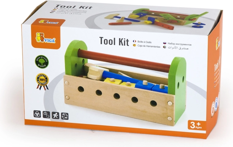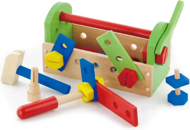 Deze hoogwaardige houten gereedschapsset in een robuuste draagkist is ideaal voor de eerste bouwpogingen. Kinderen oefenen fijne motoriek, logisch denken en oog-handcoördinatie tijdens schroeven, timmeren en aandraaien. Kleurrijke onderdelen en realistisch gereedschap stimuleren creatief spel en rollenspel.