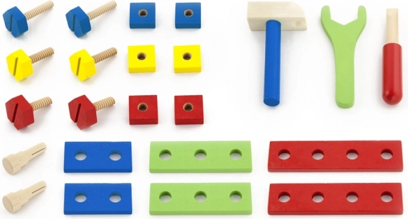 Spelen met schroeven en gereedschap ontwikkelt oog-handcoördinatie, geduld en creatief denken bij kinderen.