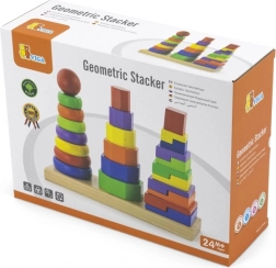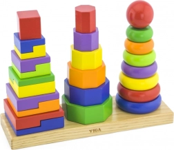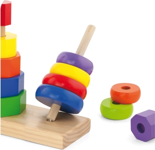 Het houten piramidespel biedt zowel plezier als educatie voor de kleintjes. Het is ontworpen om de ontwikkeling van het kind te ondersteunen via:
