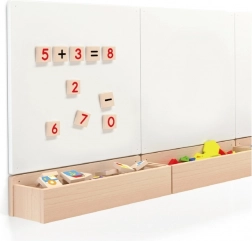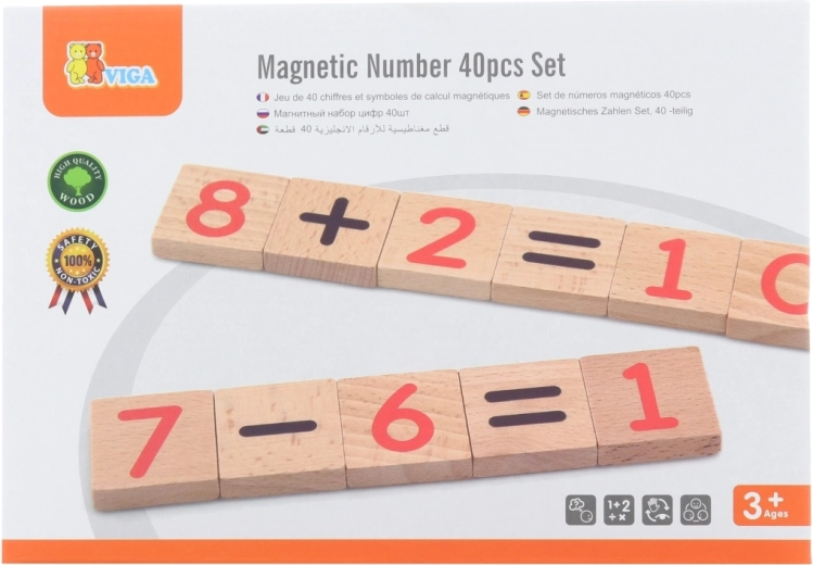 Deze set magnetische houten cijfers is een geweldig hulpmiddel voor interactief leren van wiskunde. Dankzij de magneten kunnen kinderen eenvoudig eenvoudige vergelijkingen op elk magnetisch oppervlak samenstellen en uit elkaar halen.