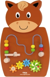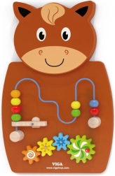 Het houten activiteitenbord in de vorm van een paard is een van de toonaangevende speelgoedproducten die creativiteit en leren bij kinderen stimuleren. Het is uitgerust met houten tandwielen en een baan voor kralen op een draad, die kinderen kunnen verplaatsen met behulp van een hefboommechanisme. Dit speelgoed boeit door zijn verscheidenheid aan kleuren en vormen en helpt zo bij het herkennen van kleuren en vormen.