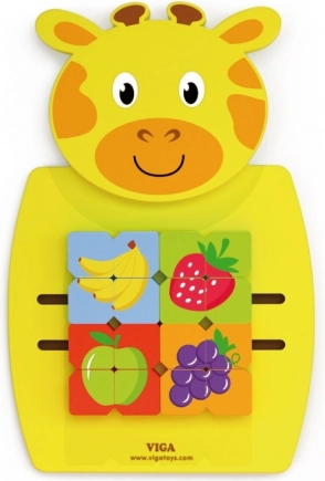 VIGA houten bord in de vorm van een giraf voor de ontwikkeling van kinderlijk vaardigheden. Vrolijk design en fruitpuzzels voor leren en plezier.