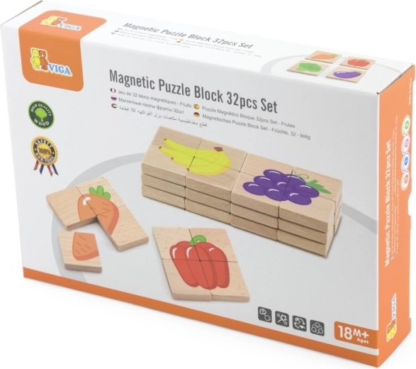 De set bevat in totaal 32 magnetische stukken, die gemakkelijk vast te houden en te manipuleren zijn. De illustraties van fruitmotieven zijn levendig en prikkelen de verbeelding van uw kind.