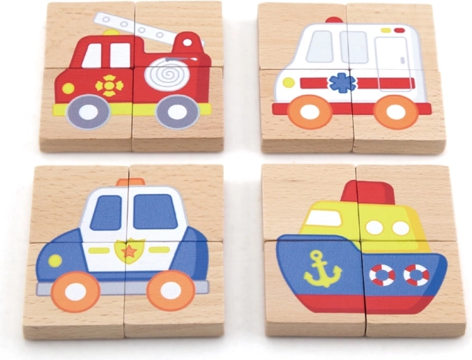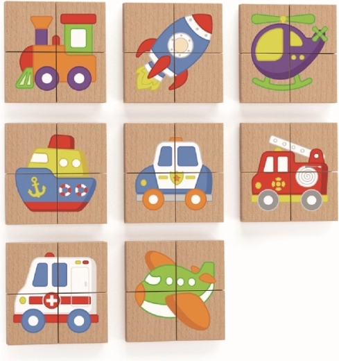 Deze puzzel helpt kinderen hun logisch denken te ontwikkelen door het combineren van kleurrijke afbeeldingen tot complete vervoersmiddelen.