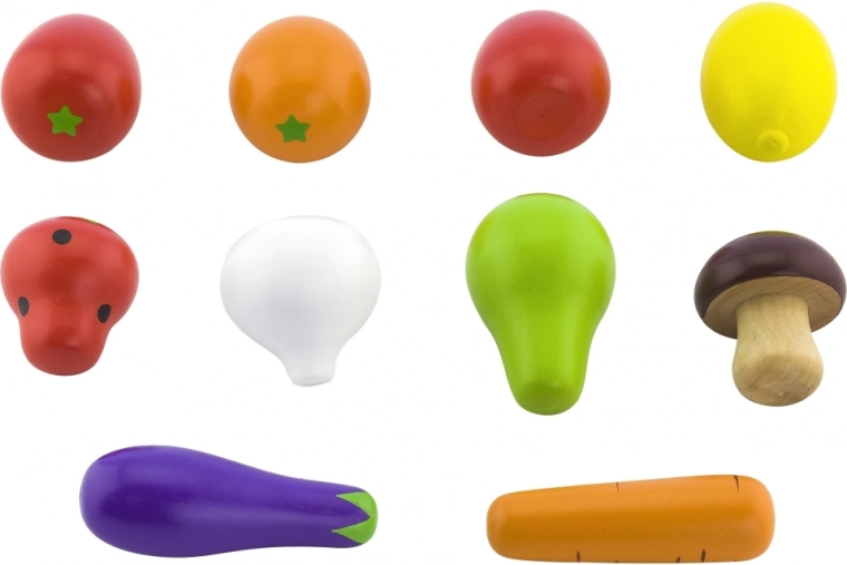 Deze set van houten fruit en groenten is het perfecte speelgoed voor kleine chef-koks. Elk stuk fruit en groente is zorgvuldig gemaakt van hoogwaardig hout en beschilderd met veilige verf, geschikt voor jonge kinderen.