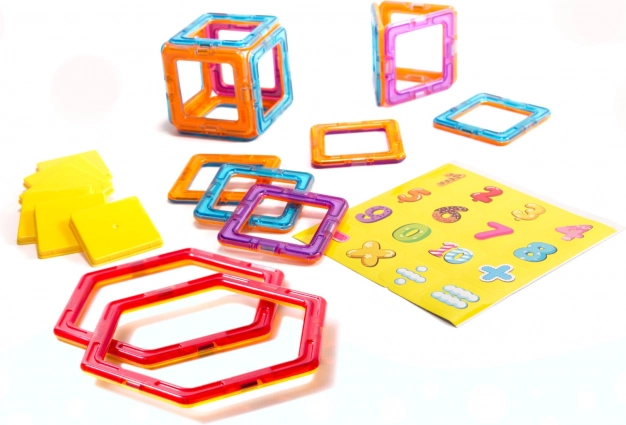 Één bouwset, veel mogelijkheden – magnetische delen van verschillende vormen laten u 3D en platte vormen creëren, allemaal dankzij de sterke magneten.