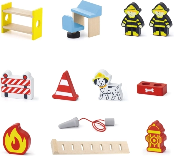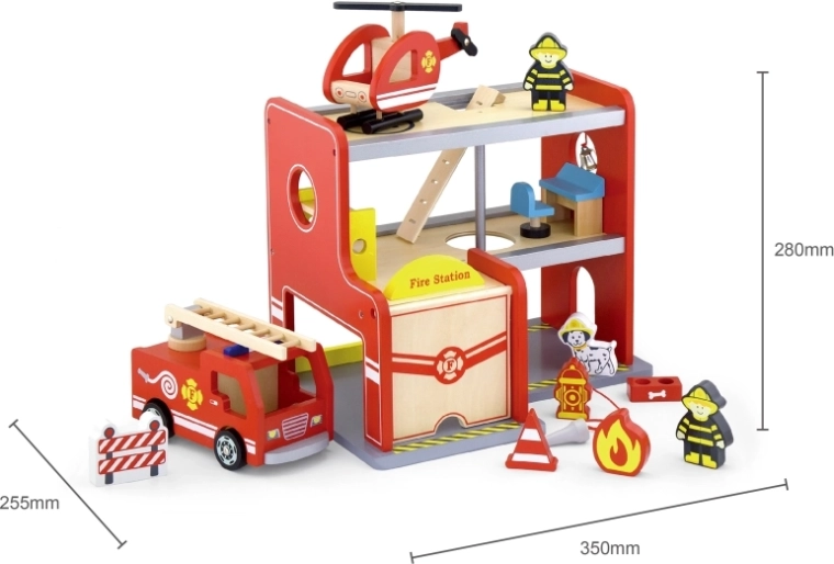 In de verpakking vind je alles voor direct speelplezier: het stationsgebouw, 2 brandweerlieden, een helikopter, een brandweerauto, een hydrant, een stapelbed, een stoel, een bedieningspaneel en een ladder. Materialen en verven zijn veilig en niet giftig, zodat kinderen zorgeloos kunnen spelen. Ideaal als cadeau dat plezier brengt en lang meegaat.