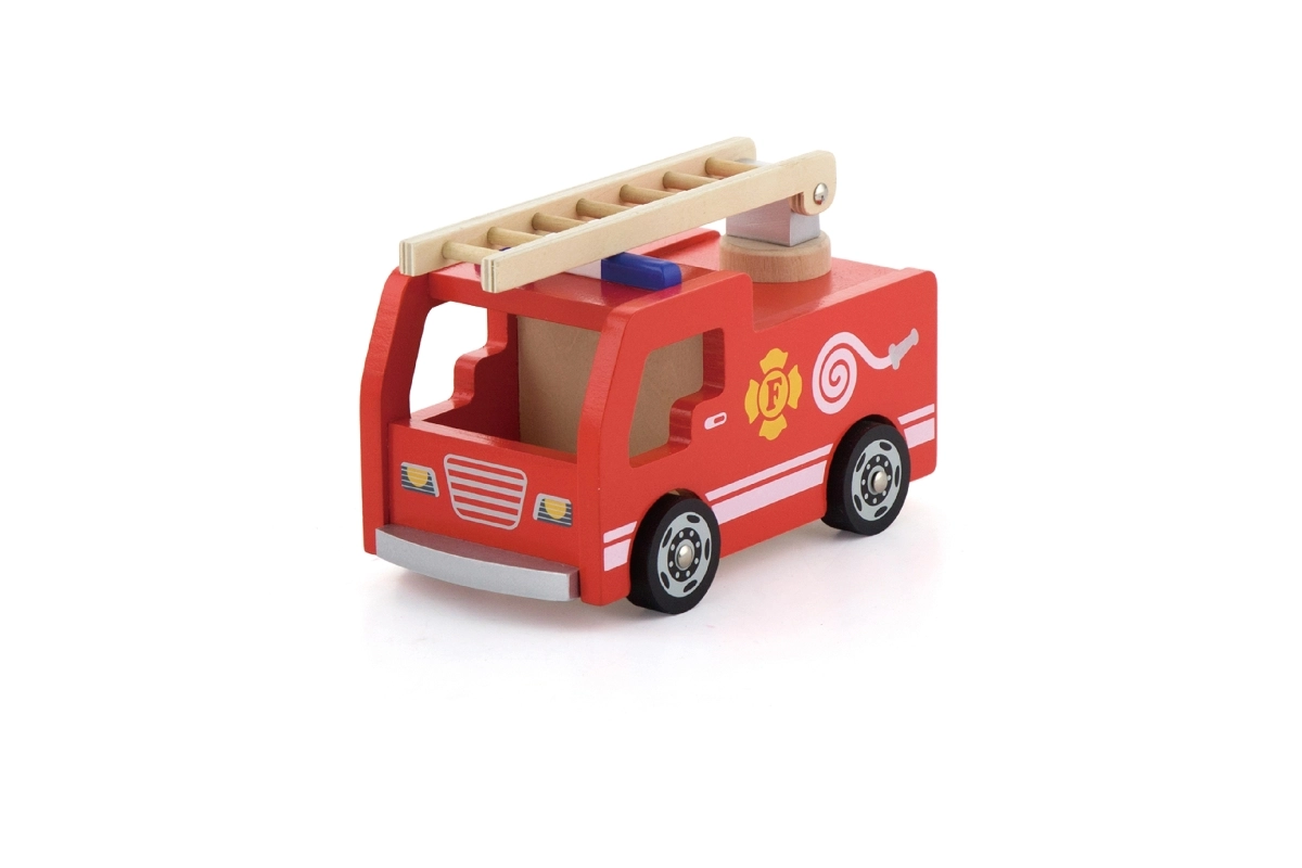 Duurzame houten uitvoering met vrij rollende wielen en een ladder voor reddingsacties. Geweldig voor de ontwikkeling van motoriek en hand-oogcoördinatie.