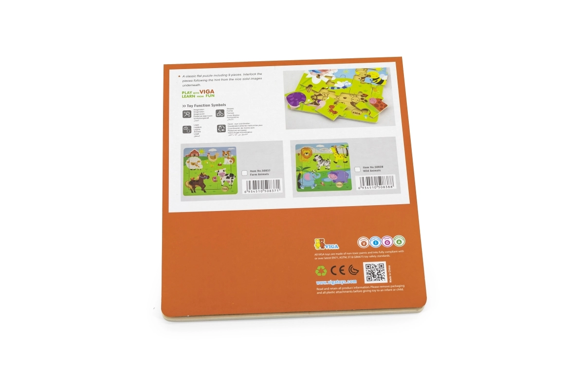De afmeting van de gelegde puzzel is ca. 22,5 × 22,5 cm, wat een praktische grootte is voor spelen op tafel of op de vloer. De puzzel is geschikt voor kinderen vanaf 18 maanden en helpt de woordenschat uit te breiden bij het benoemen van de dieren.