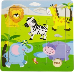 Deze houten puzzel met safarithema brengt kinderen plezier in het puzzelen en ondersteunt tegelijkertijd hun natuurlijke ontwikkeling. De grote, gemakkelijk vast te pakken stukken zijn afgestemd op kleine kinderhanden en helpen bij het oefenen van concentratie en het herkennen van vormen en dieren.