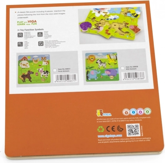 Negen overzichtelijke, robuuste stukken zijn gemakkelijk vast te pakken en te leggen – ideaal als eerste puzzel voor kinderen vanaf 18 maanden.