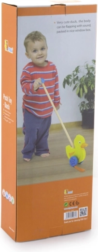 Houten duw-eend aan een stok is een eenvoudig maar effectief speelgoed waar elk kind dol op zal zijn. Het is een klassiek speelgoed dat veel voordelen biedt. Het schattige gele eendje beweegt energiek met zijn pootjes tijdens het lopen, wat kinderen motiveert om te wandelen. Het speelgoed is verpakt in een esthetische doos met een venster waardoor je het eendje kunt zien. Binnenin zit een stok met een handgreep die perfect in een kinderhand past. De stok is niet permanent bevestigd, wat het opbergen vergemakkelijkt. Het hele speelgoed is gemaakt van beukenhout en geverfd met niet-giftige verven in levendige kleuren die de aandacht trekken en uitnodigen tot spelen, wat veel speelplezier brengt.