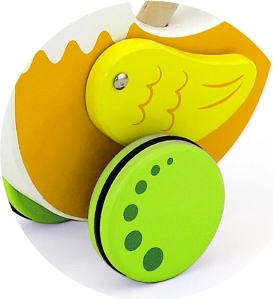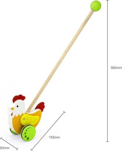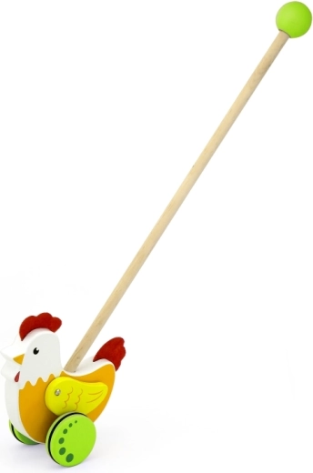 Deze rollende loopwagen in de vorm van een kip van Viga is ideaal voor kinderen die leren lopen. Het kleurrijke ontwerp trekt de aandacht en stimuleert de ontwikkeling van de coördinatie.