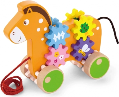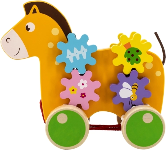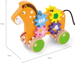 Het paardje heeft kleurrijke tandwielen die draaien wanneer het speelgoed beweegt, wat jonge kinderen helpt hun motorische vaardigheden te ontwikkelen.