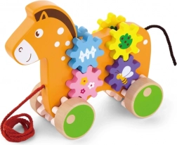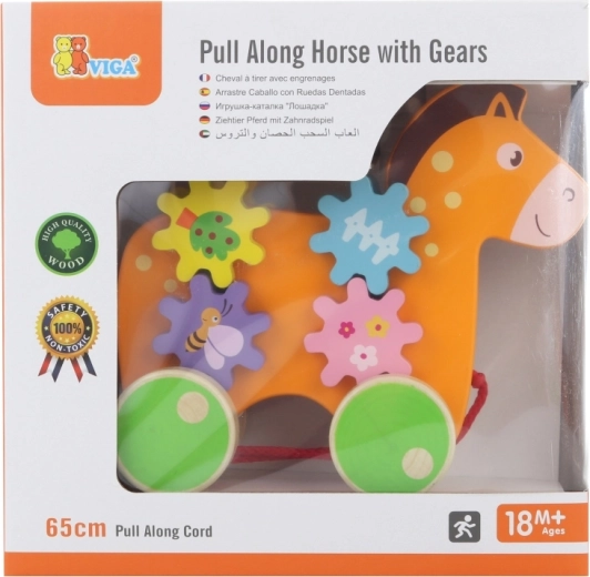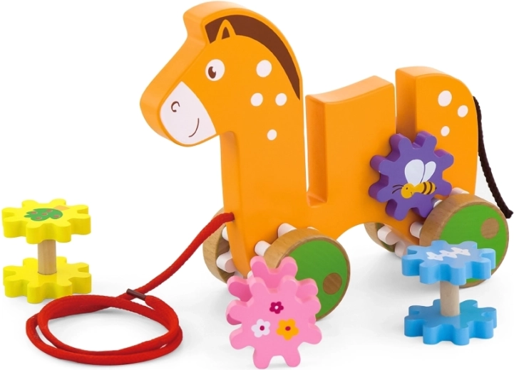Ontdek het speelplezier met ons houten trekpaardje, de ideale keuze voor kleine ontdekkers. Dit paardje met een helder oranje lijf en kleurrijke tandwielen biedt een stimulerende speelervaring vol plezier en leren.