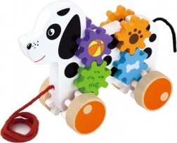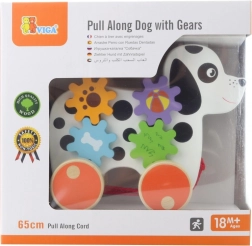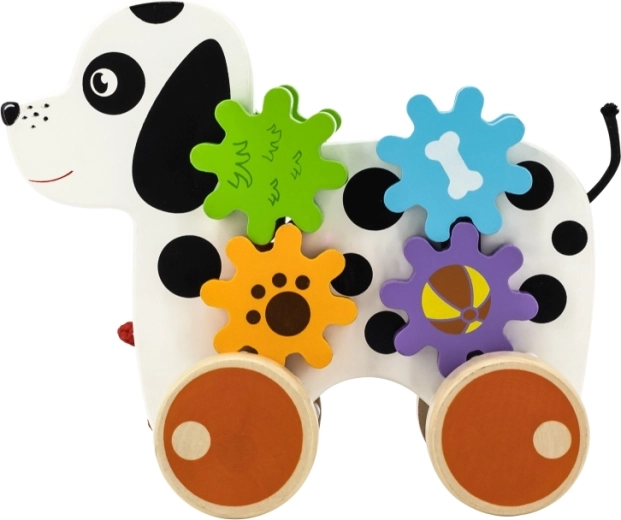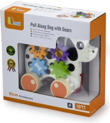Deze houten trekhond is ontworpen om niet alleen de fysieke activiteit van het kind te stimuleren, maar ook zijn cognitieve vaardigheden. Wanneer het hondje rijdt, draaien de tandwielen mee, wat een interactieve ervaring creëert voor kleine ontdekkers.