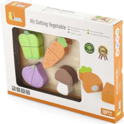 Met deze houten groentesnijset kunnen kinderen koken nadoen in hun eigen keukentje. De set bevat een gevarieerde reeks houten groentestukken, een snijplank en een mes, wat veilig en leuk snijden mogelijk maakt. Geschikt voor kinderen vanaf 18 maanden, deze set ondersteunt de ontwikkeling van motorische vaardigheden.