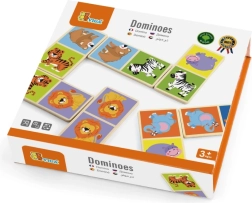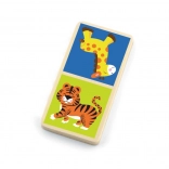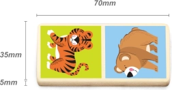 Houten domino met dieren is een educatief speelgoed voor kinderen vanaf 3 jaar. Het helpt bij het ontwikkelen van dierkennis en verbetert de fijne motoriek en het logisch denken.