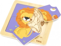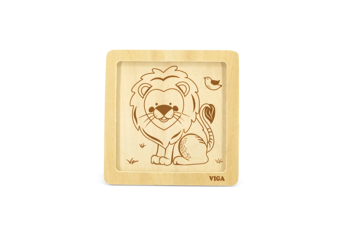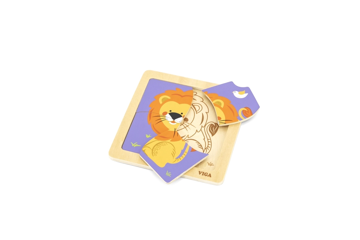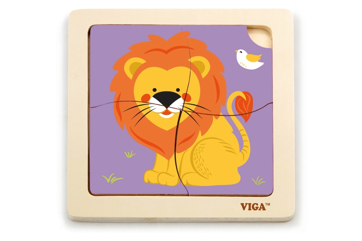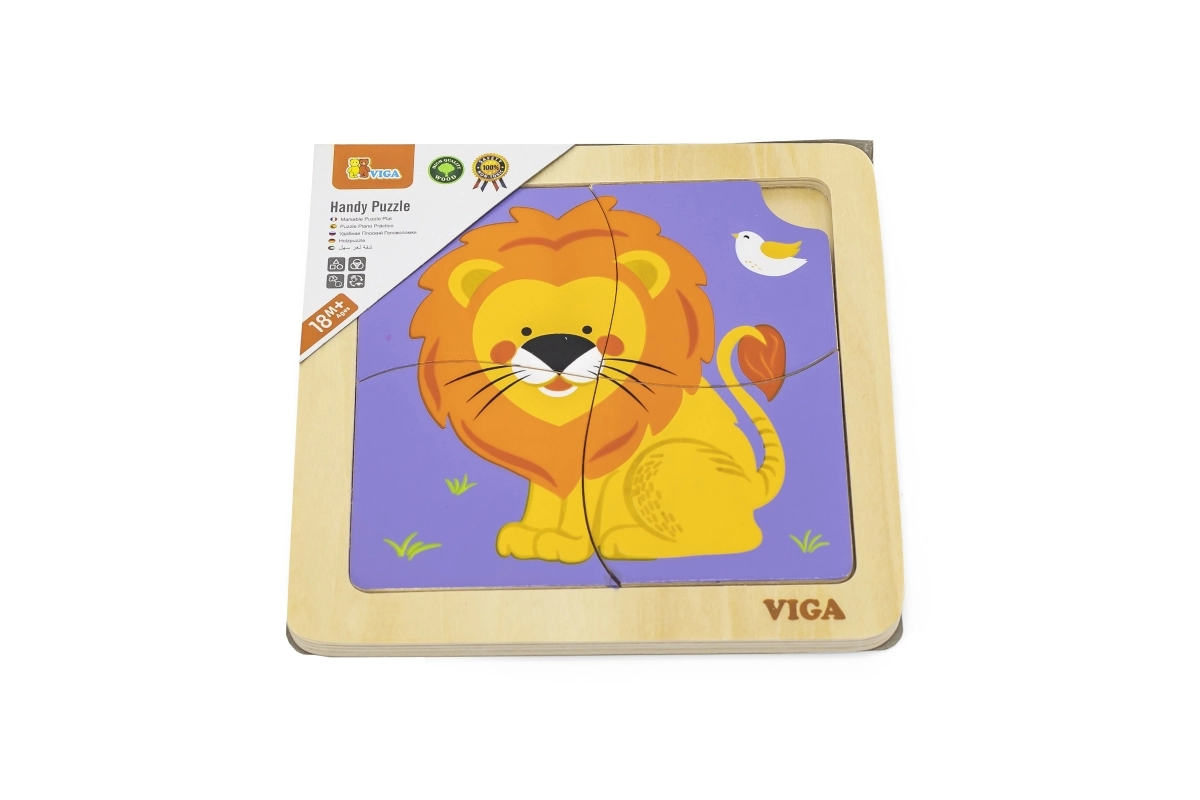 Deze kwalitatieve houten puzzel met een vrolijke leeuw is ontworpen voor kleine handjes. Dankzij de vier robuuste stukjes met gladde randen leren kinderen gemakkelijk vormen te koppelen en oefenen ze geduld en concentratie. De praktische houten basis houdt de stukjes op hun plek en maakt het leggen eenvoudiger.