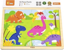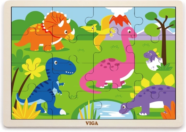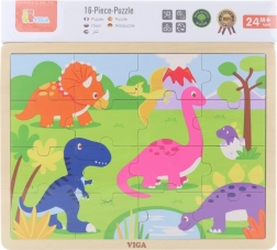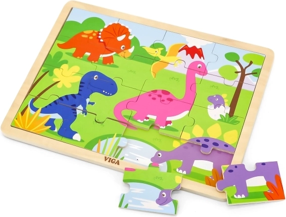 De kleurrijke houten VIGA-puzzel met dinothema is een uitstekende keuze voor de eerste puzzelervaring. Kinderen oefenen spelenderwijs hun opmerkingsvermogen, concentratie en ruimtelijk inzicht, terwijl de robuuste houten stukjes prettig in kleine handjes passen.