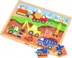 De houten puzzel met bouwthema valt op door heldere kleuren en een robuuste uitvoering die dagelijks spelen aankan. Met 24 stukjes is het een uitstekende keuze voor de eerste ‘grotere’ puzzel en ondersteunt het de concentratie en het visuele waarnemen.