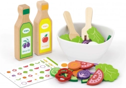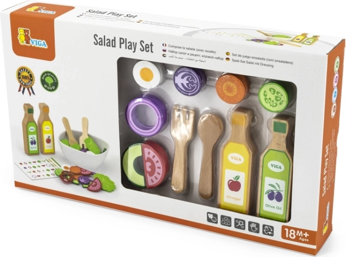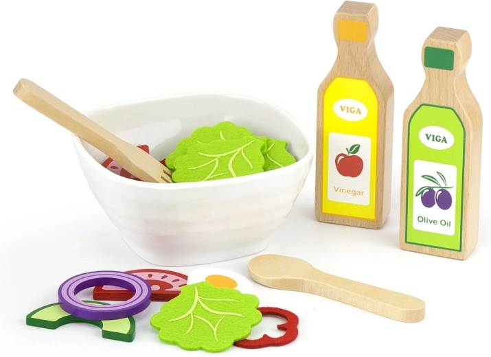 Deze kwalitatieve houten saladeset biedt kinderen realistisch keukenspel. Dankzij de uitgebreide uitrusting kunnen kleine koks hun eigen salade bereiden, ingrediënten in de kom mengen en serveren met behulp van het bestek. Het spel stimuleert gezonde gewoonten en leert op een natuurlijke manier verschillende soorten groenten herkennen.