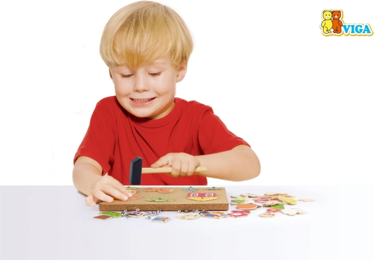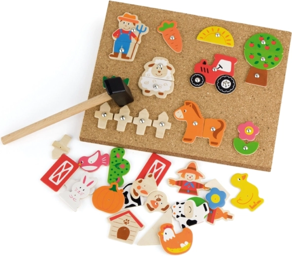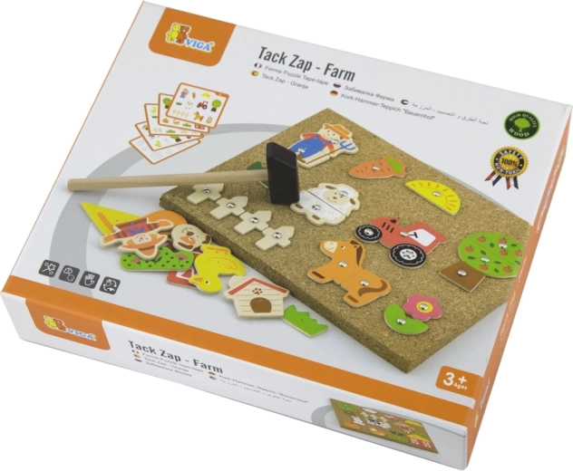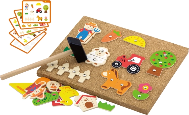 De creatieve kurkbord-hamerset boerderij van het merk Viga ontwikkelt de fijne motoriek, het logisch denken en de creativiteit van kinderen vanaf 3 jaar. Met 24 houten onderdelen, een kurken bord, een klein hamertje en punaises maken kinderen hun eigen boerderijscènes volgens hun fantasie of voorbeelden. Veilige afgeronde randen en een duurzame afwerking zorgen voor veel speelplezier en leren.