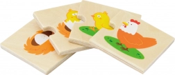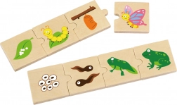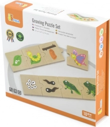 Deze set houten “groeiende” puzzels leert kinderen de levenscycli van dieren en planten begrijpen – van zaad of ei tot volwassenheid. Elk motief bestaat uit een reeks stukjes die logisch in elkaar passen en zo op natuurlijke wijze fijne motoriek, inzicht in samenhang en oog-handcoördinatie trainen.