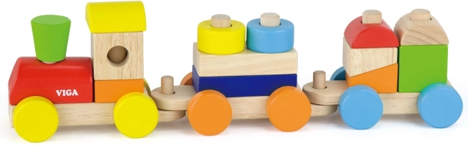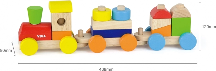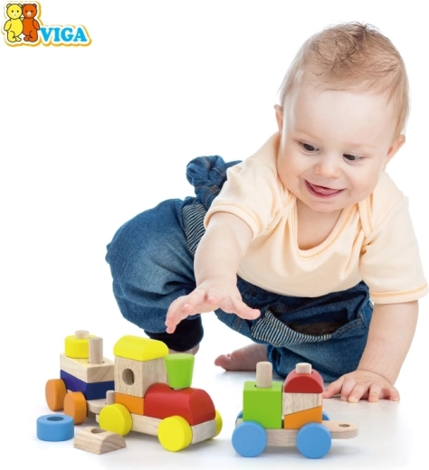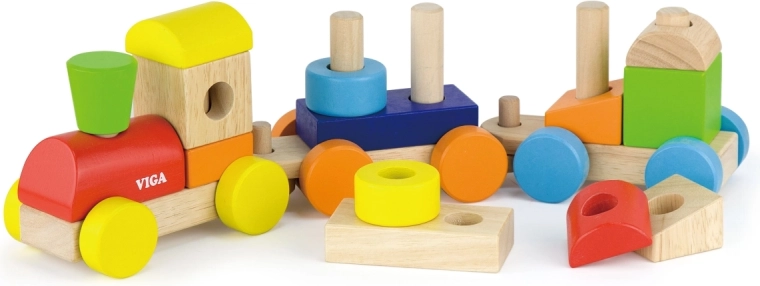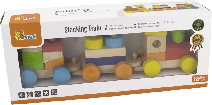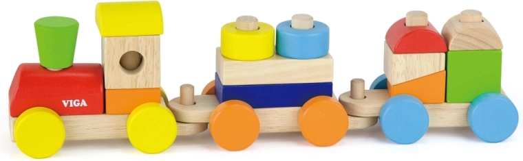Ontdek tijdloos houten speelgoed dat plezier en leren combineert. De VIGA stapeltrein bestaat uit een locomotief en twee wagonnetjes met gekleurde blokken die naar wens kunnen worden herschikt. Kinderen trainen oog-handcoördinatie, logisch denken en het herkennen van kleuren en vormen.