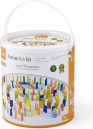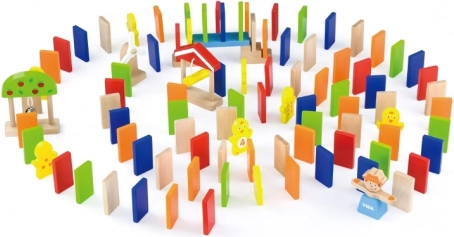 Het spel ontwikkelt belangrijke vaardigheden: traint de oog-handcoördinatie, bevordert coördinatie, nauwkeurige bewegingen en samenwerking tussen kinderen. Na het opbouwen hoef je alleen het eerste stukje aan te tikken om te genieten van het perfecte domino-effect. De praktische emmer met handvat maakt opbergen en vervoeren eenvoudig.