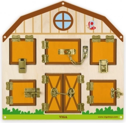 Ontdek een leuke en educatieve speelgoedset die fijne motoriek, logisch denken en geduld ontwikkelt. Het houten slotenspel met raampjes en diverse sloten en grendels onthult na het openen schattige dieren. Ideaal voor kinderen vanaf 18 maanden.