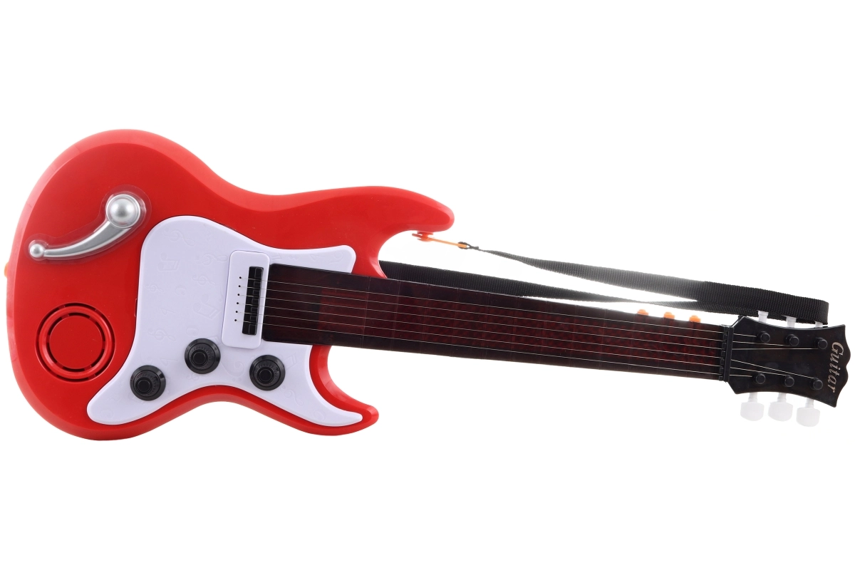 Deze elektronische kindergitaar is een geweldige keuze voor de eerste muzikale stapjes. Dankzij het compacte formaat van circa 55 cm ligt hij comfortabel in kleine handen en stimuleert hij kinderen om ritme, gehoor en creativiteit te ontwikkelen. Voeding via 3× AA-batterijen (niet inbegrepen) maakt spelen altijd en overal mogelijk, zonder stopcontact.