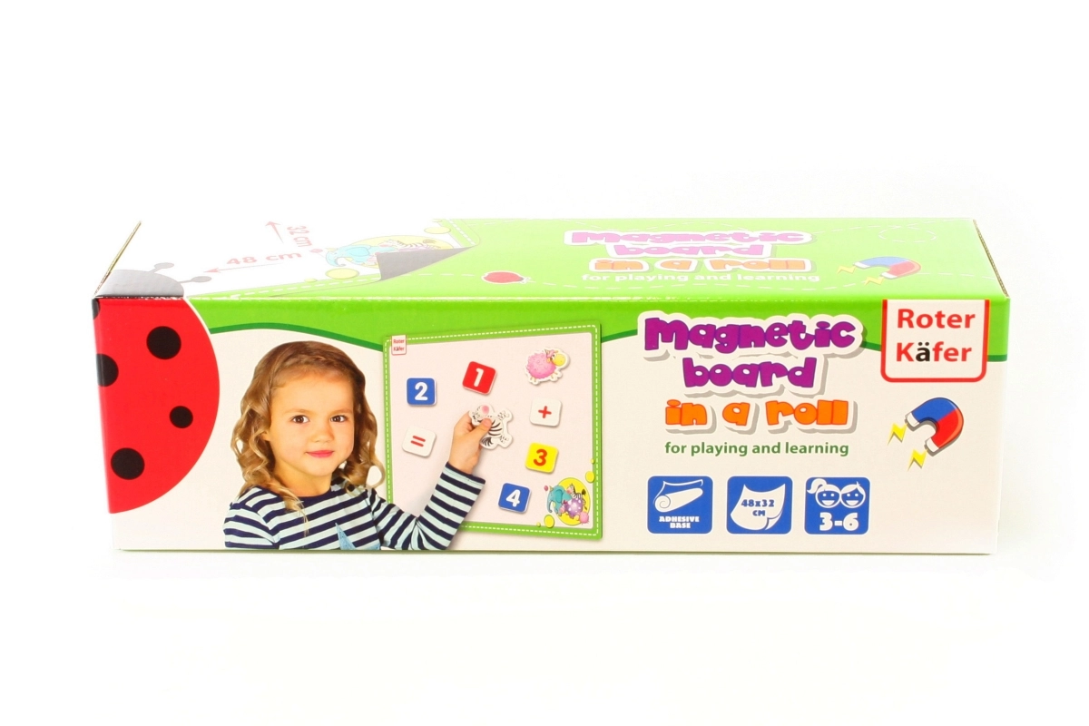 Je verplaatst het bord gemakkelijk of rolt het op om op te bergen. Ideaal voor thuisonderwijs, de kinderkamer en onderweg. Afmeting bord ca. 48 × 32 cm, compacte verpakking ca. 33 × 10 cm. Magneten niet inbegrepen.